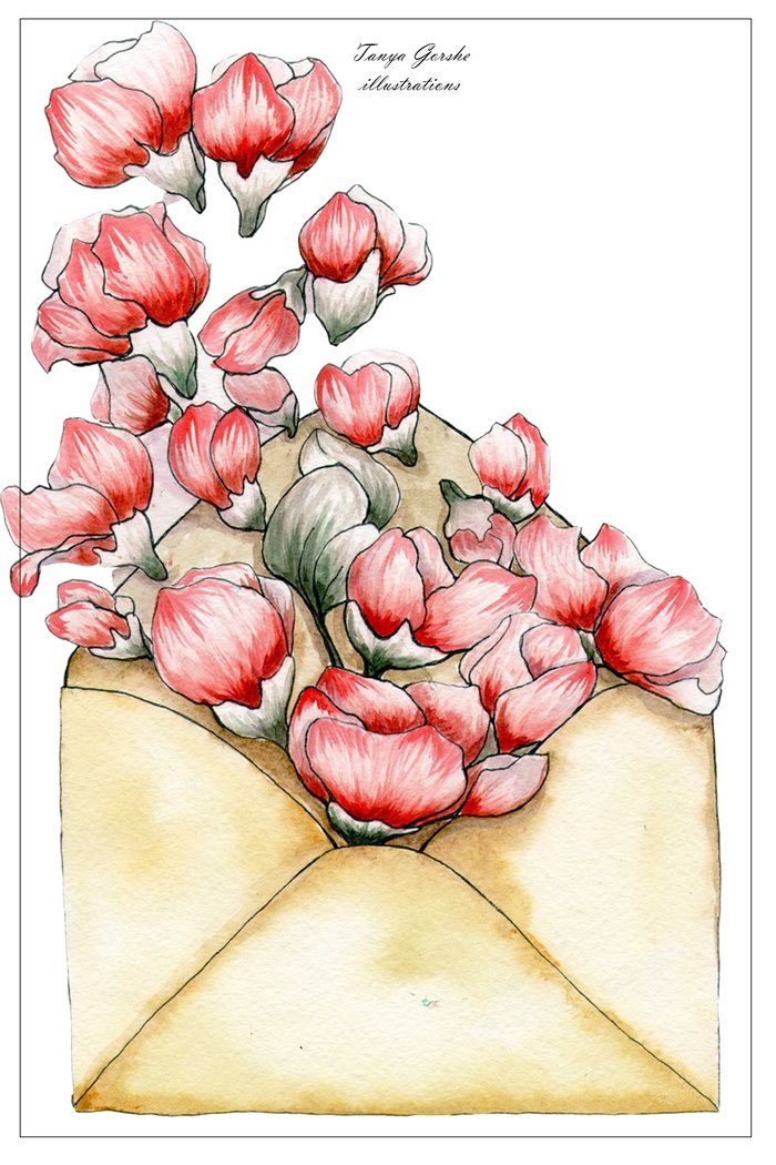 ![Конвертик с цветами акварель]()