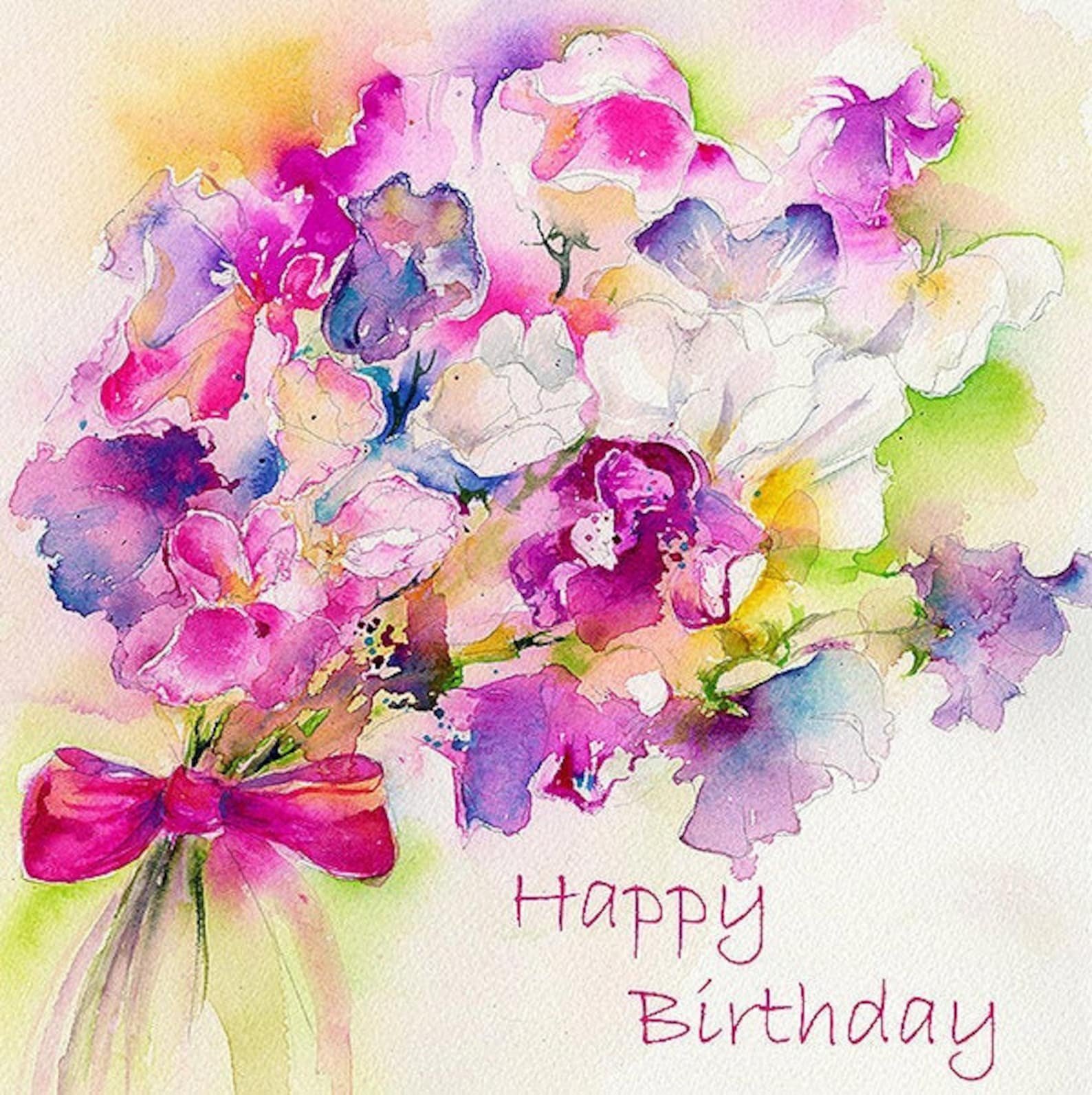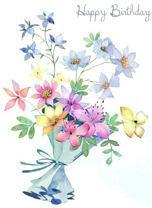 ![Поздравление с днем рождения акварель]()