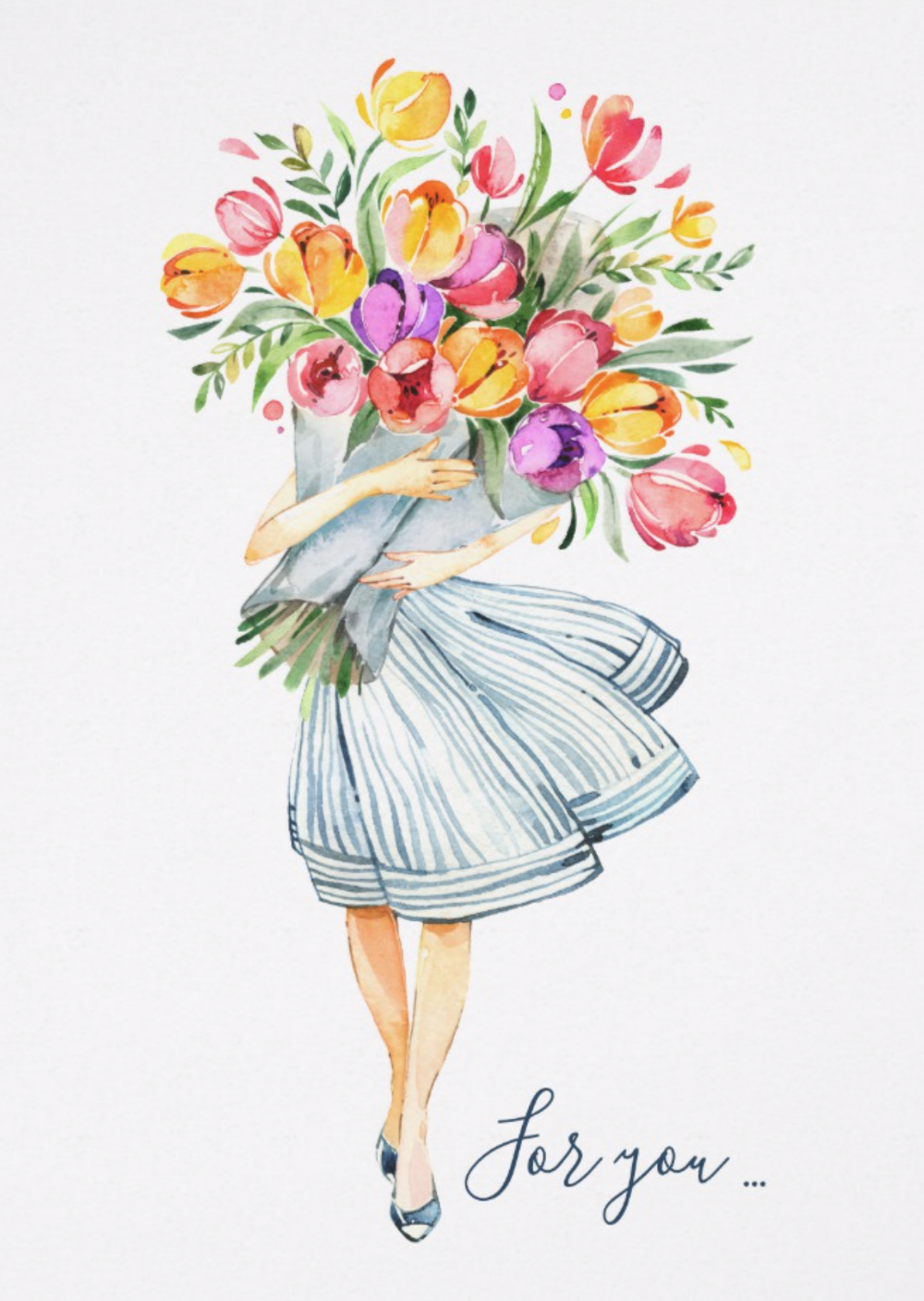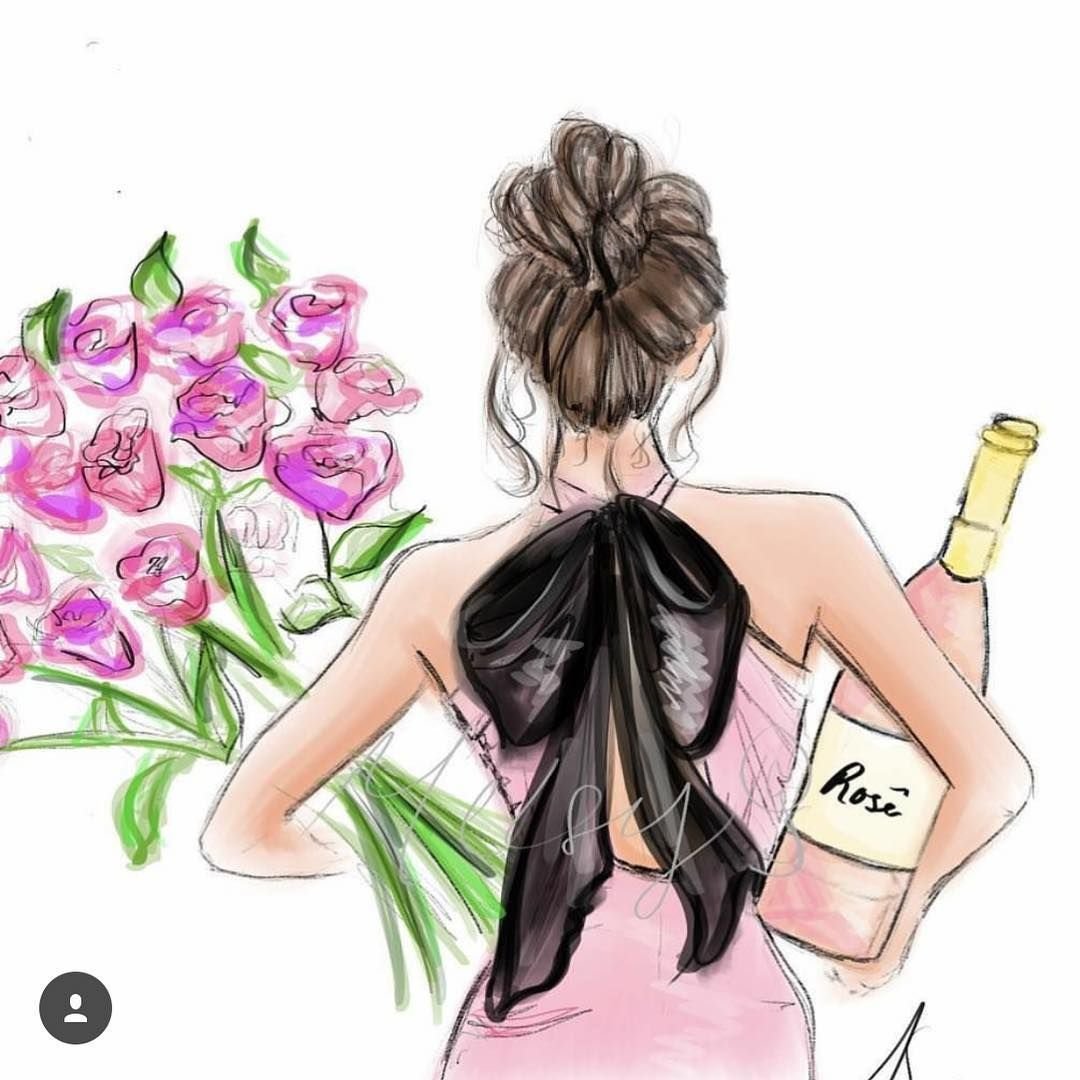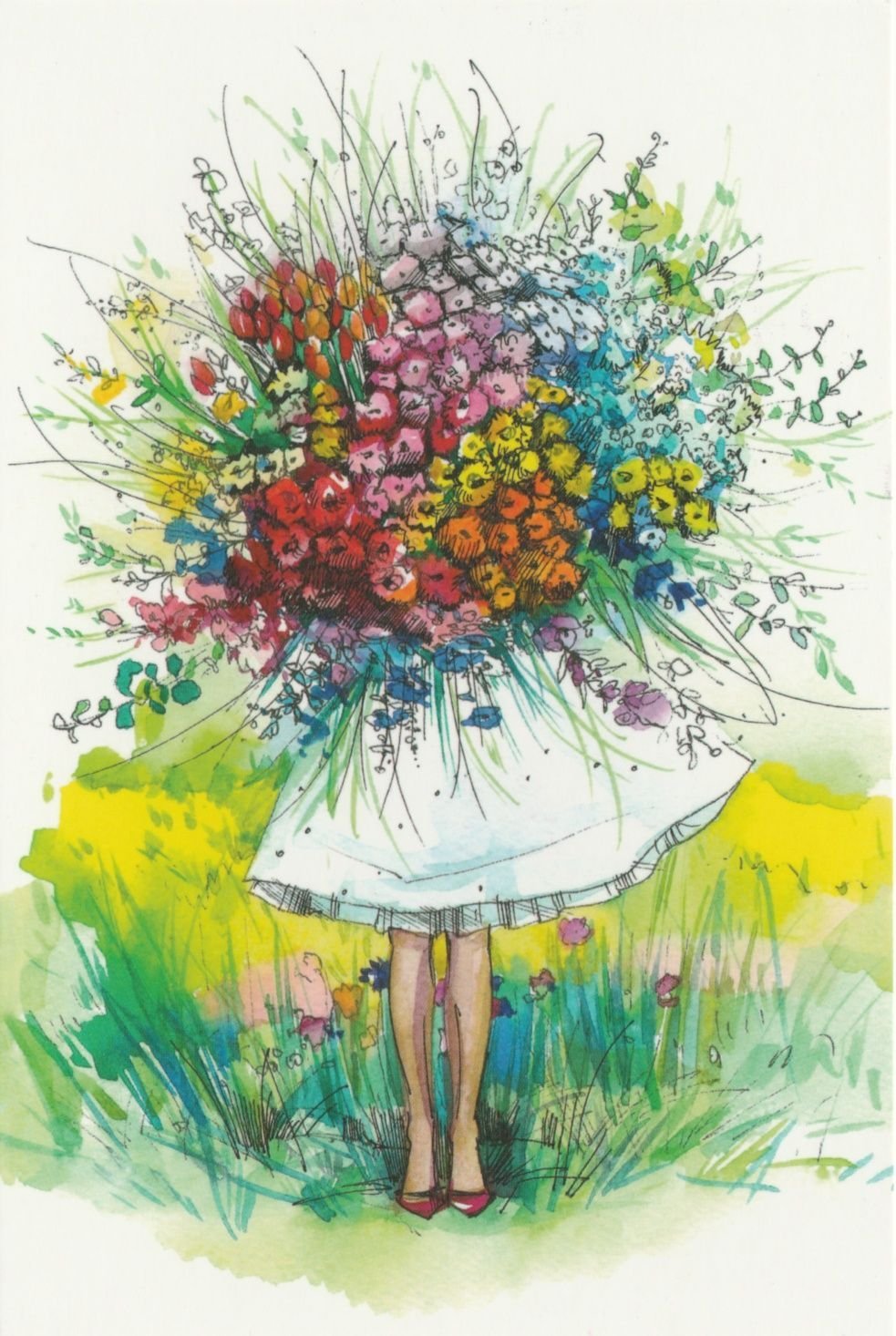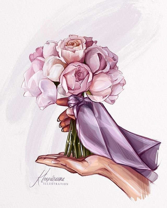 ![Нарисованная девушка с букетом]()