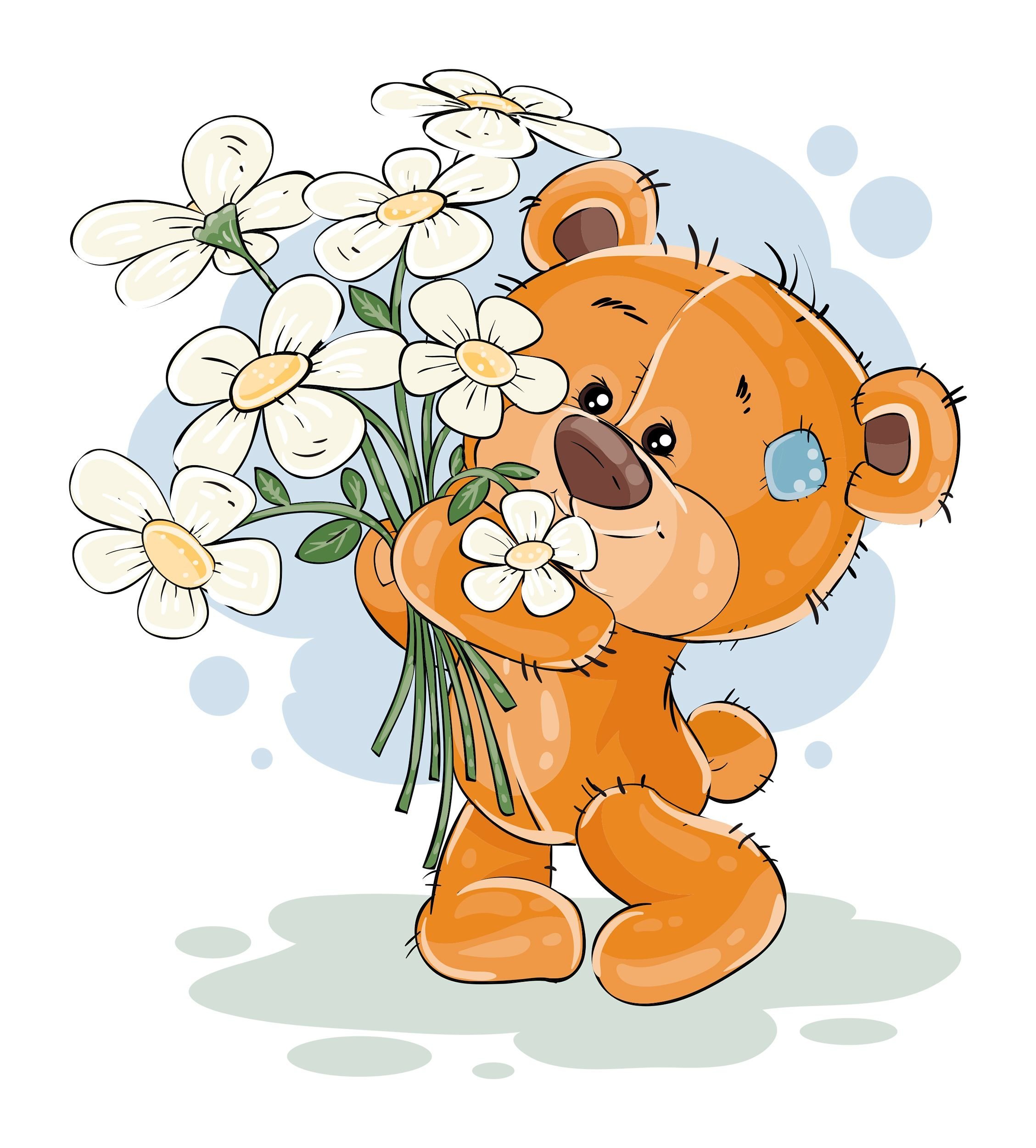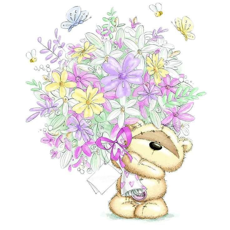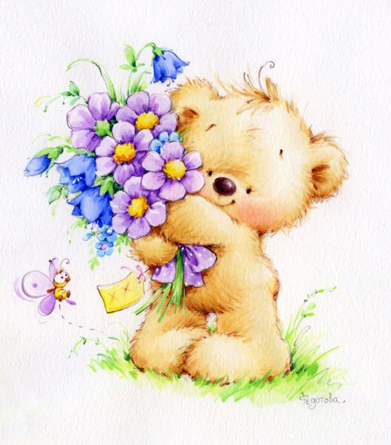 ![Медвежонок с цветами]()