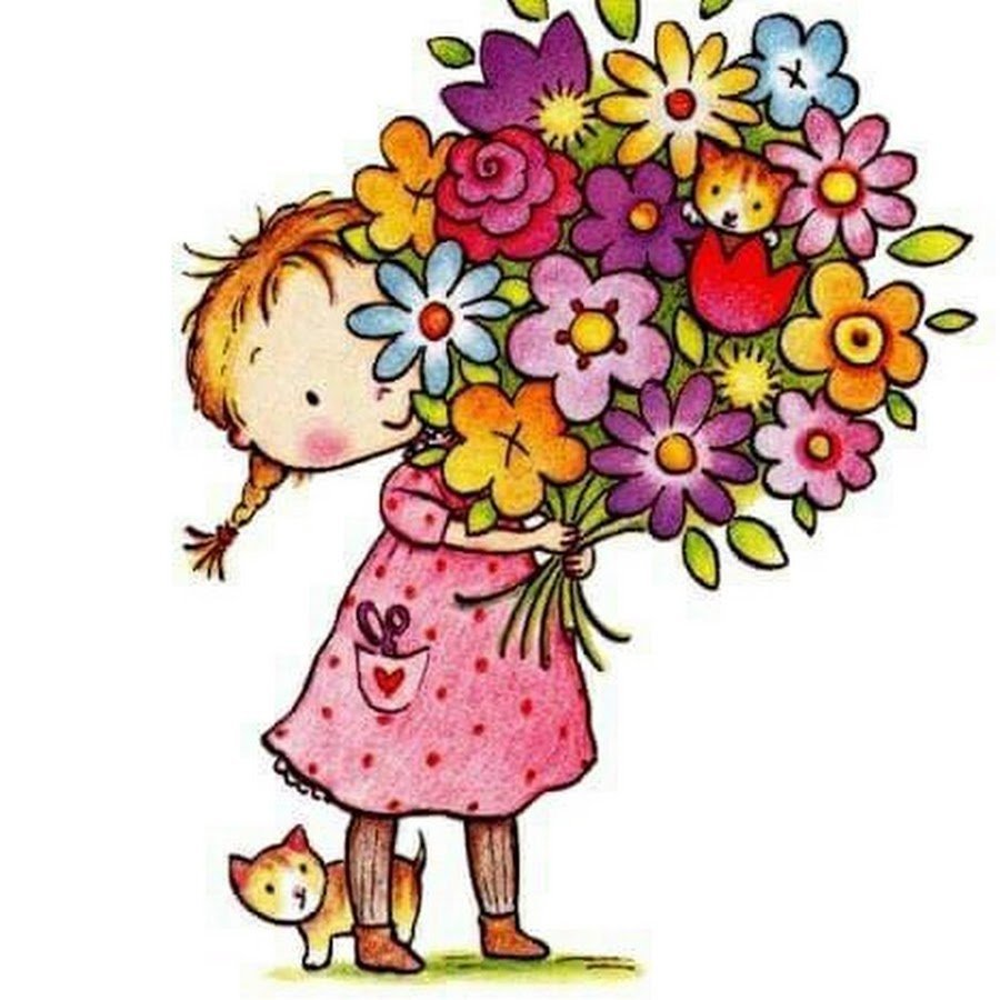 ![Девочка с букетом иллюстрация]()