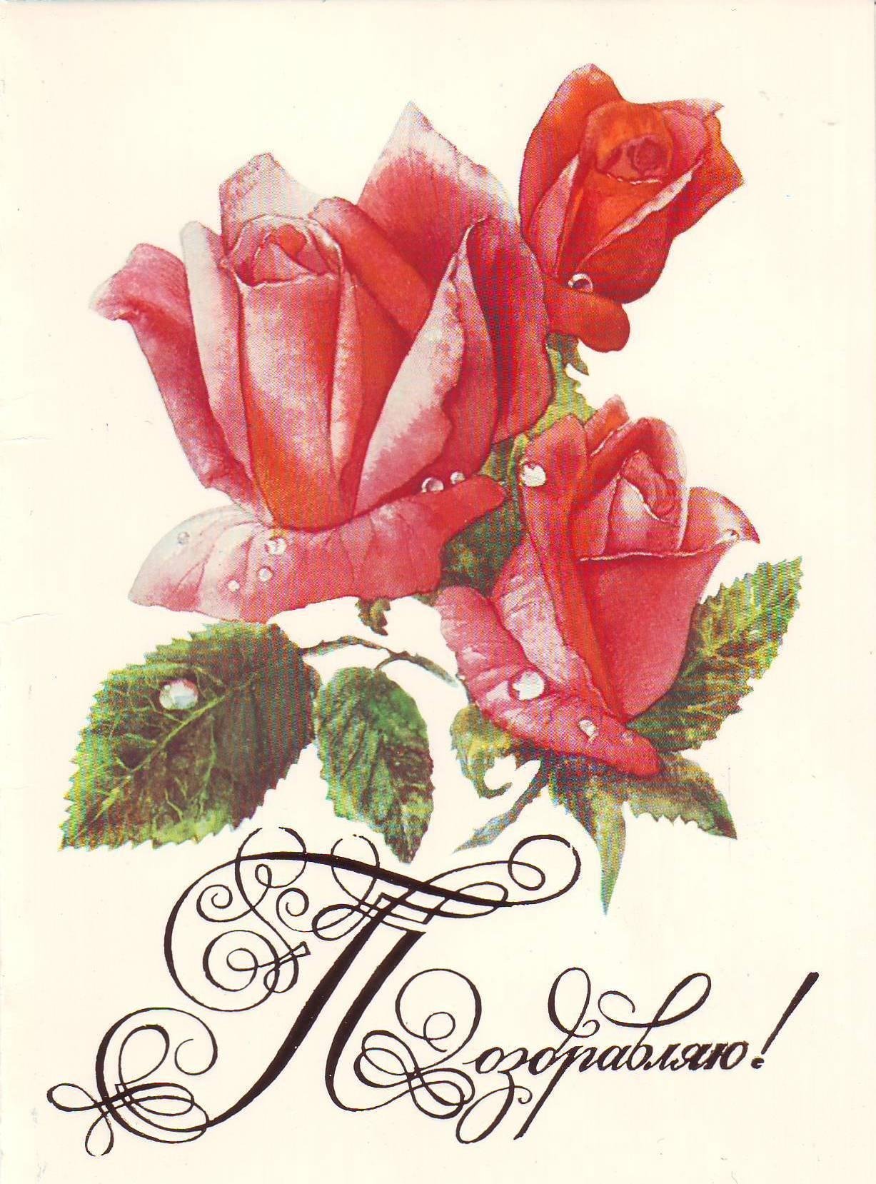 ![Советские открытки с цветами Рисованные]()