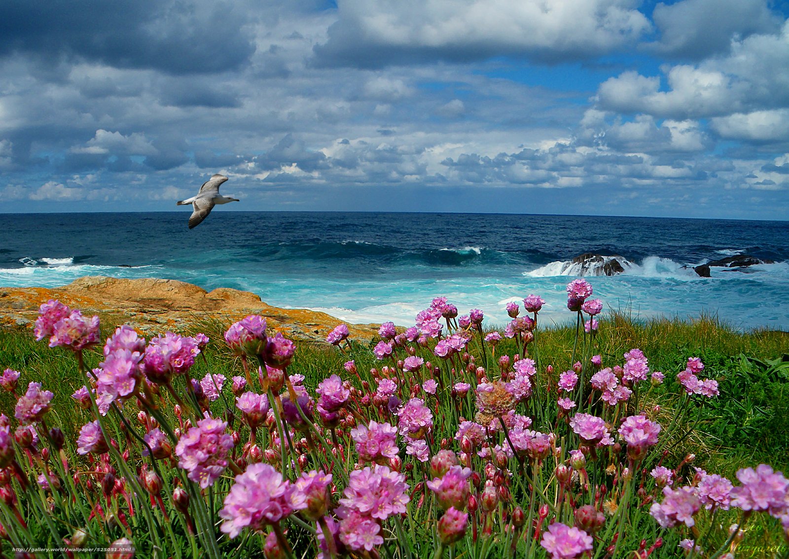 ![Море скалы цветы]()