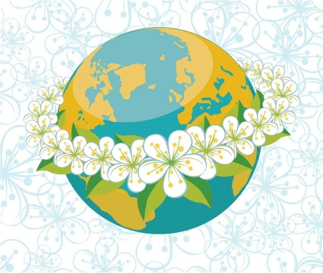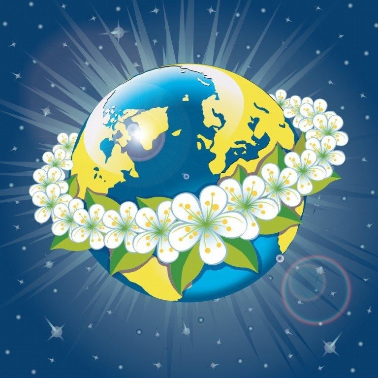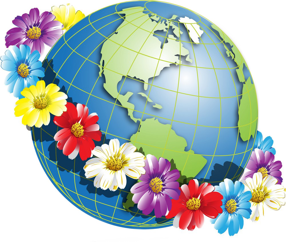 ![Земной шар с цветами]()