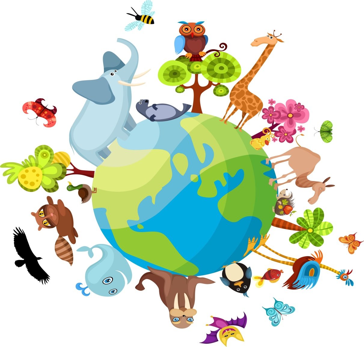 ![Животные на земном шаре]()