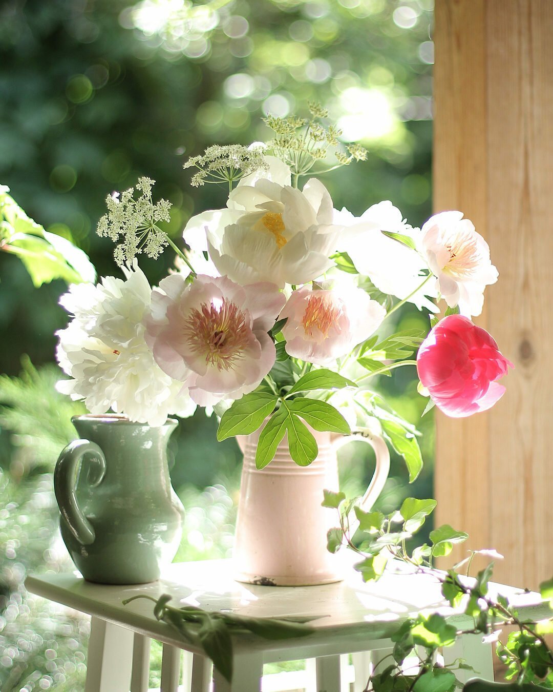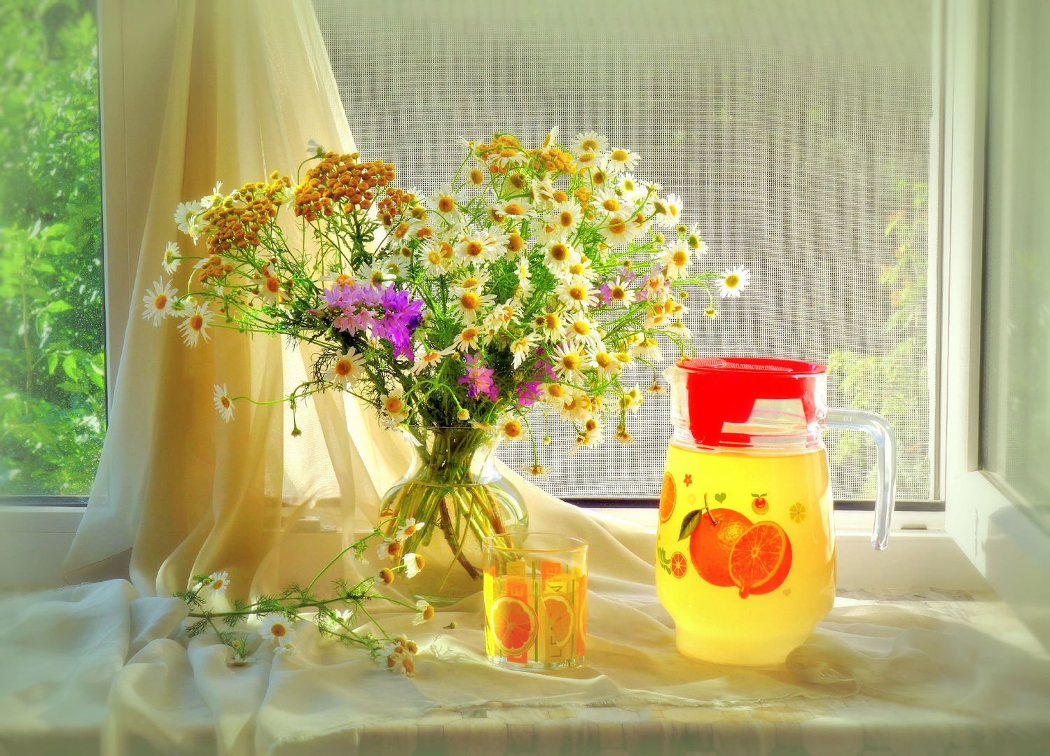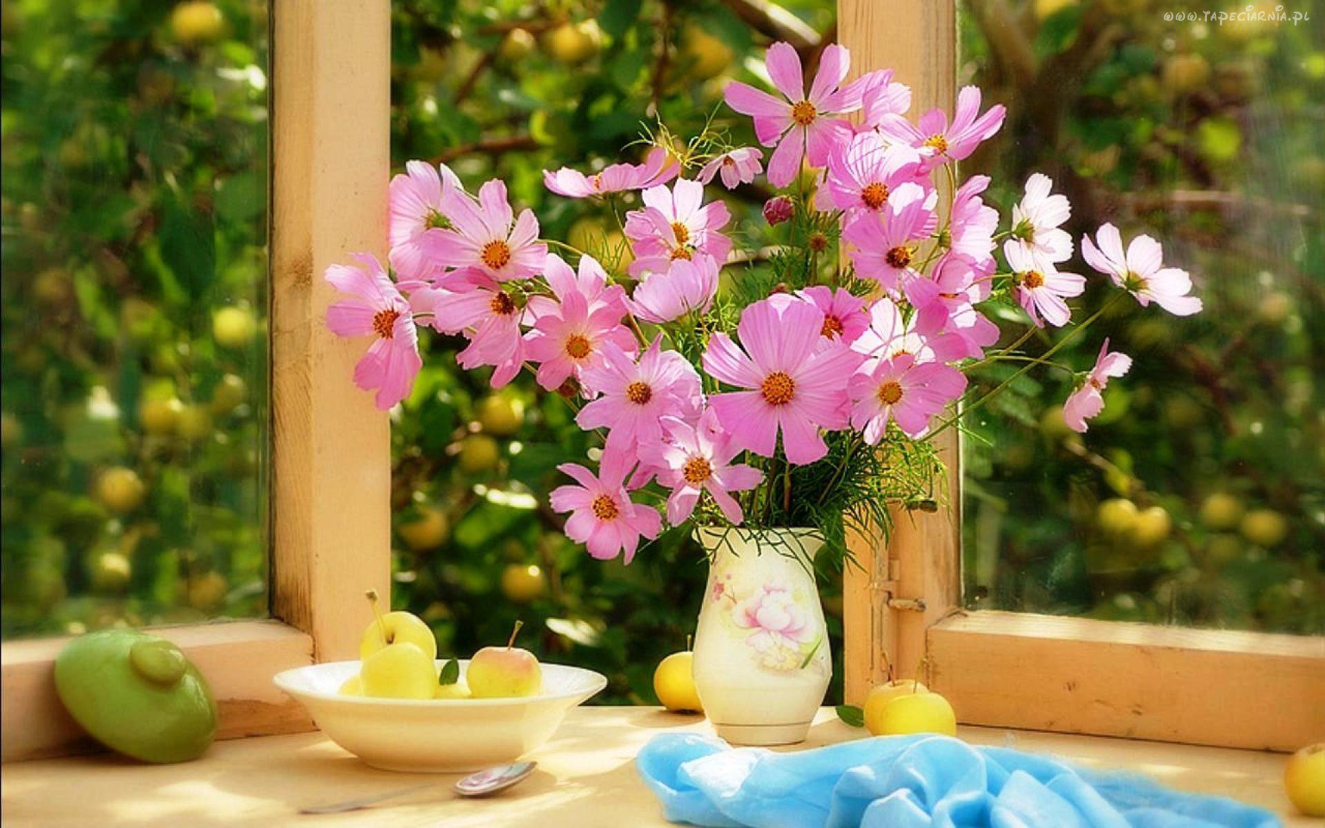 ![Летний букет цветов на окне]()