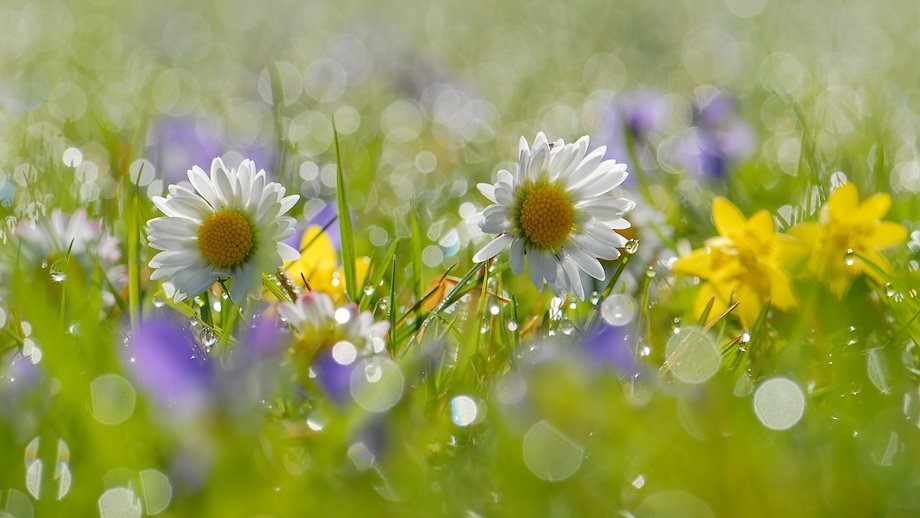 ![Утренняя роса на цветах]()