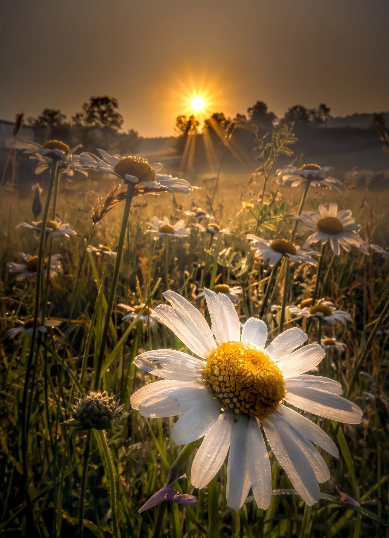 ![Красивое утро ромашки]()