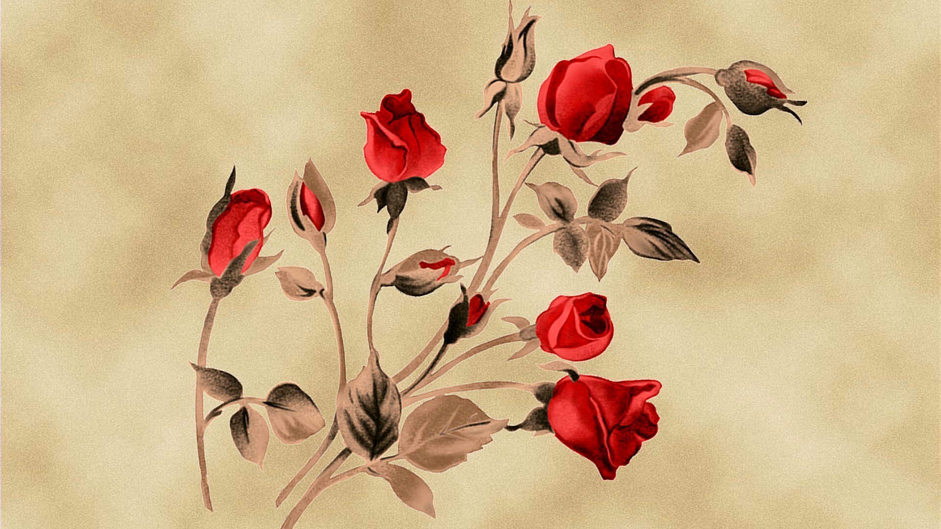 ![Винтажные красные цветы]()