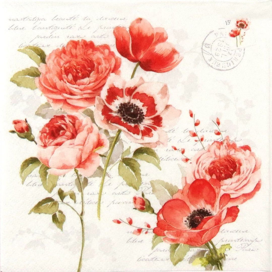 ![Красные цветы для декупажа]()