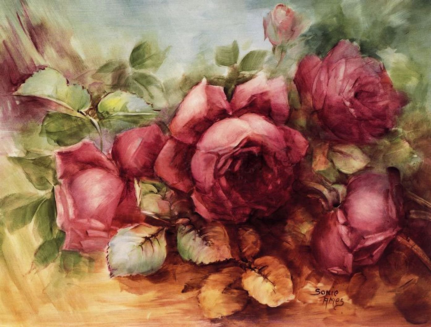 ![Винтажные красные розы]()
