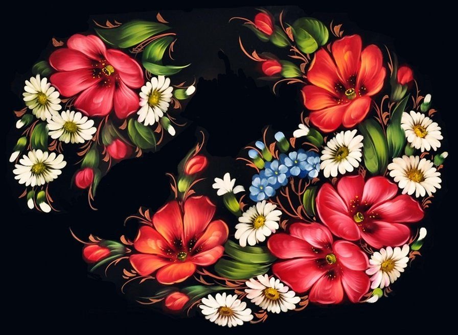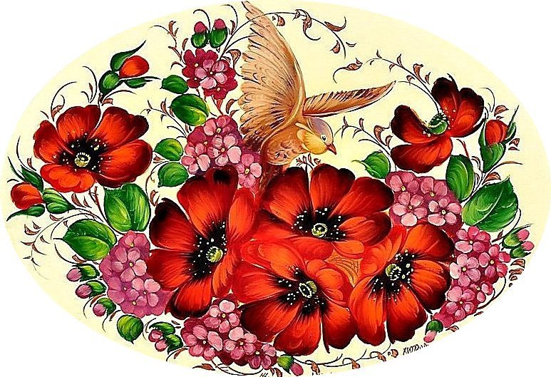 ![Петряковская роспись маки]()
