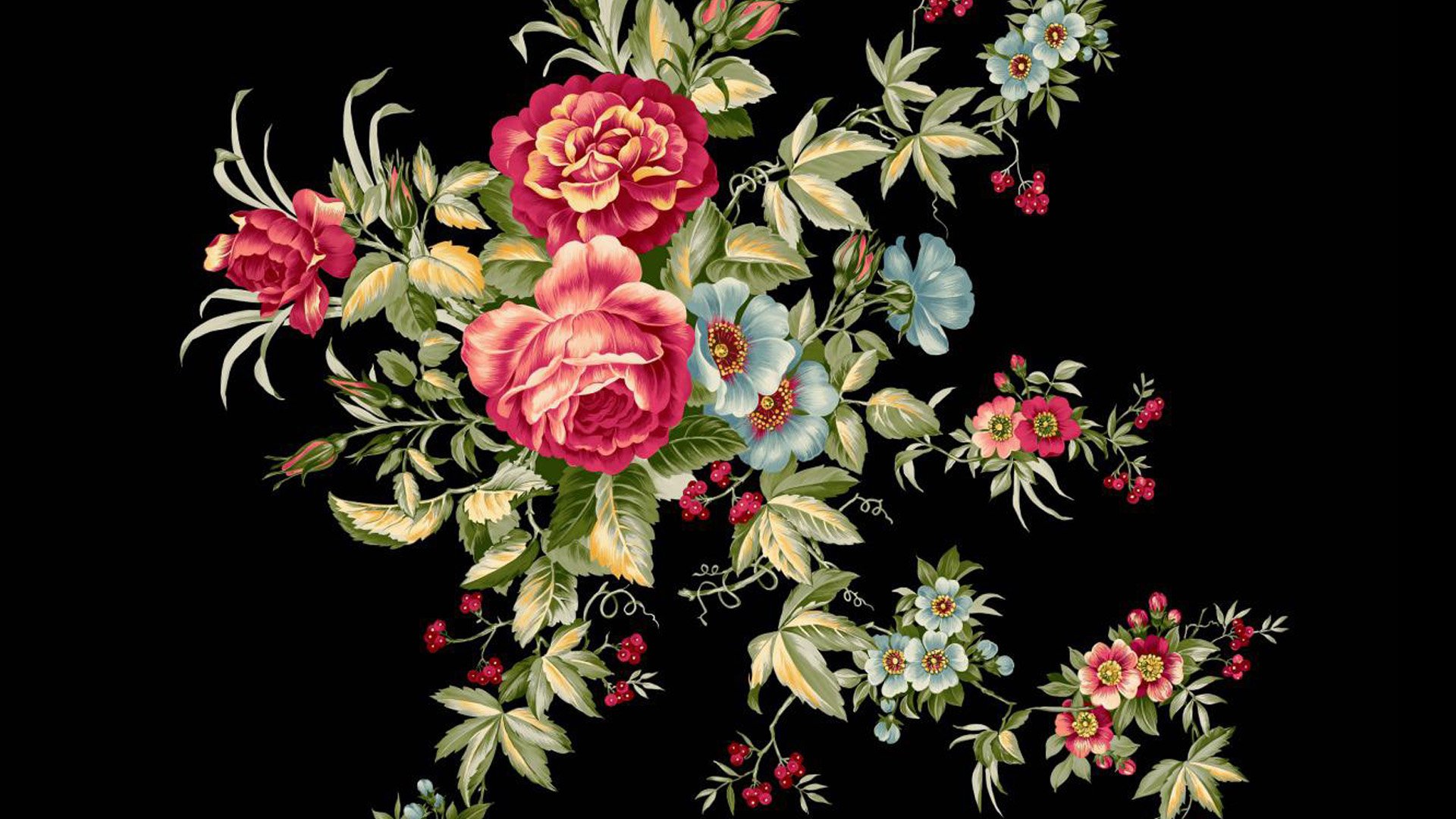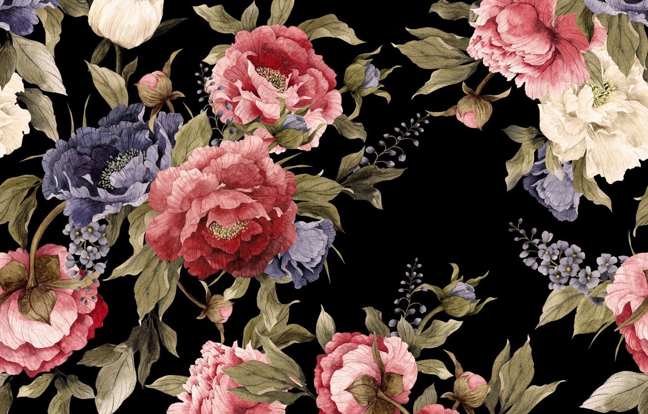 Цветы на черном фоне