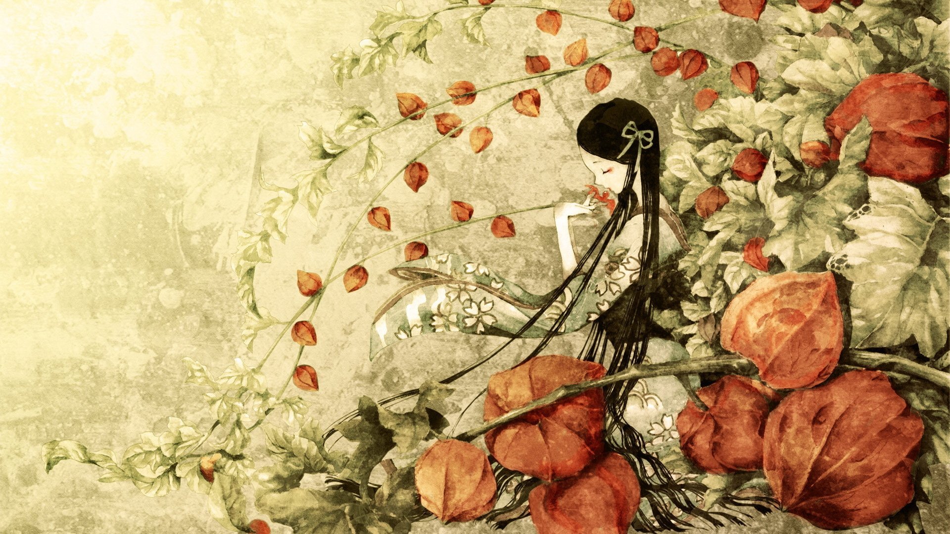 Японская гравюра.цветы.физалис