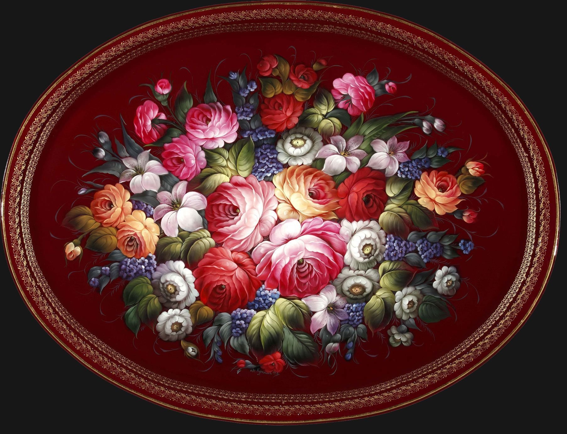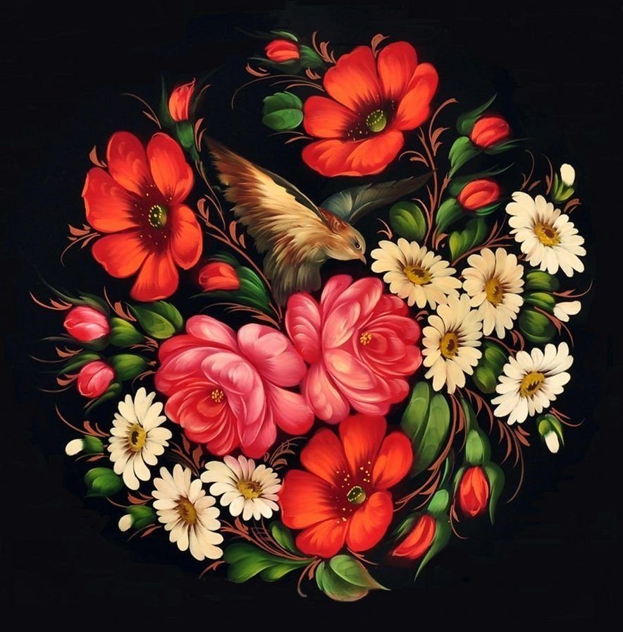 Живопись цветочной росписи Жостово.