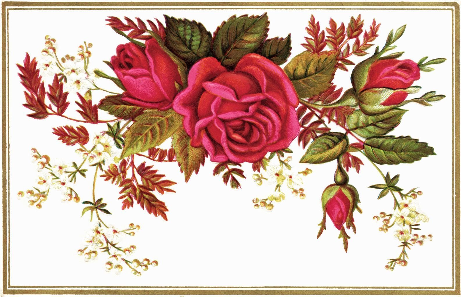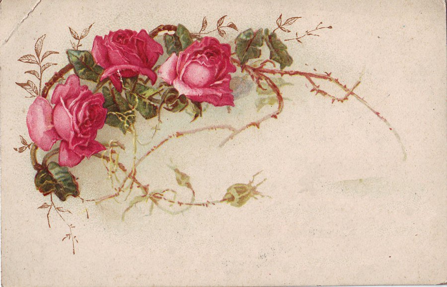![Винтажная открытка с розами]()