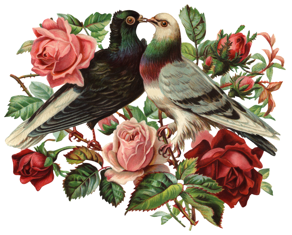 Винтажные птицы цветы