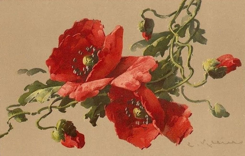 ![Винтажные цветы маки]()