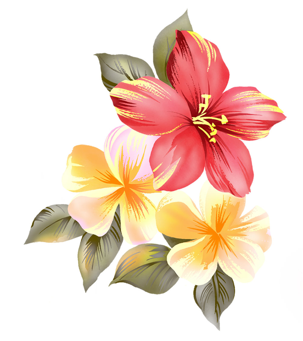 ![Тропические цветы на белом фоне]()