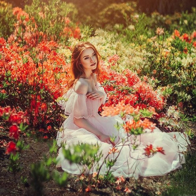 ![Девушка в цветах]()