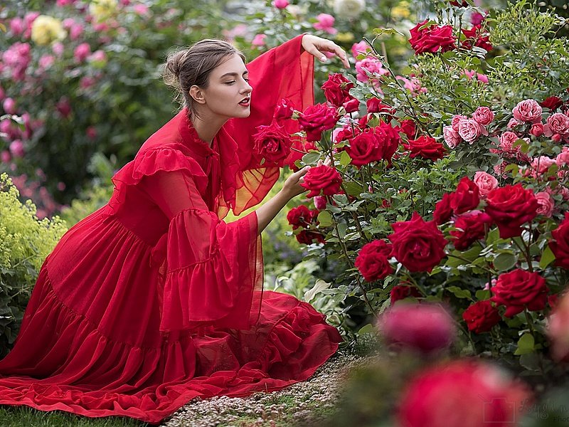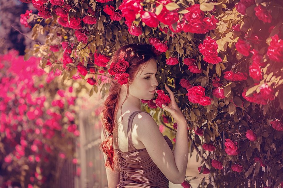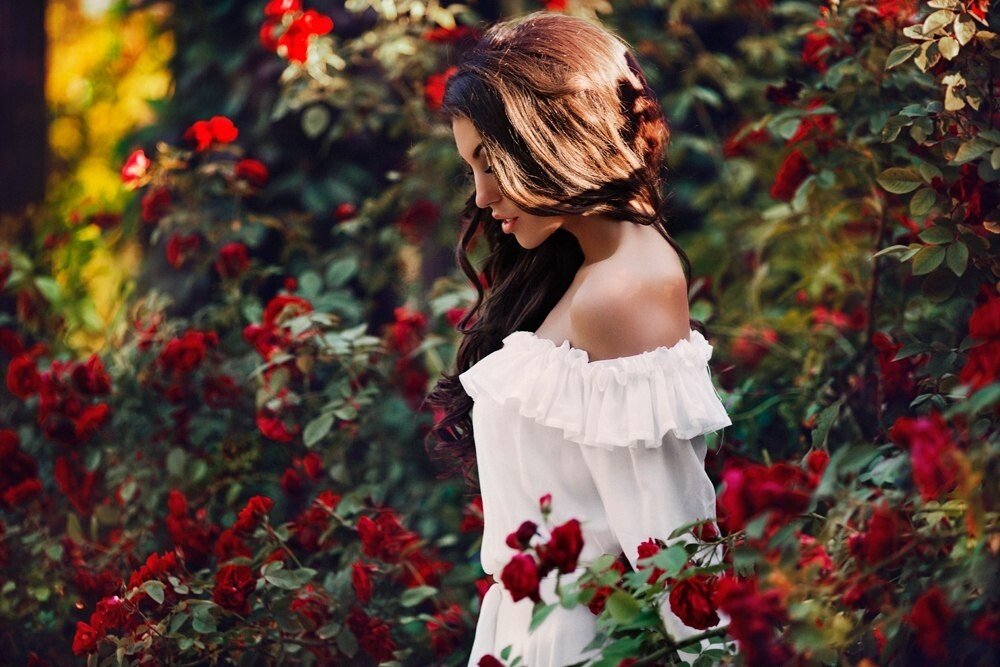 Фотосессия в розах кустах