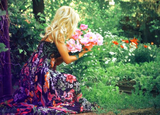 ![Женщина в саду с цветами]()
