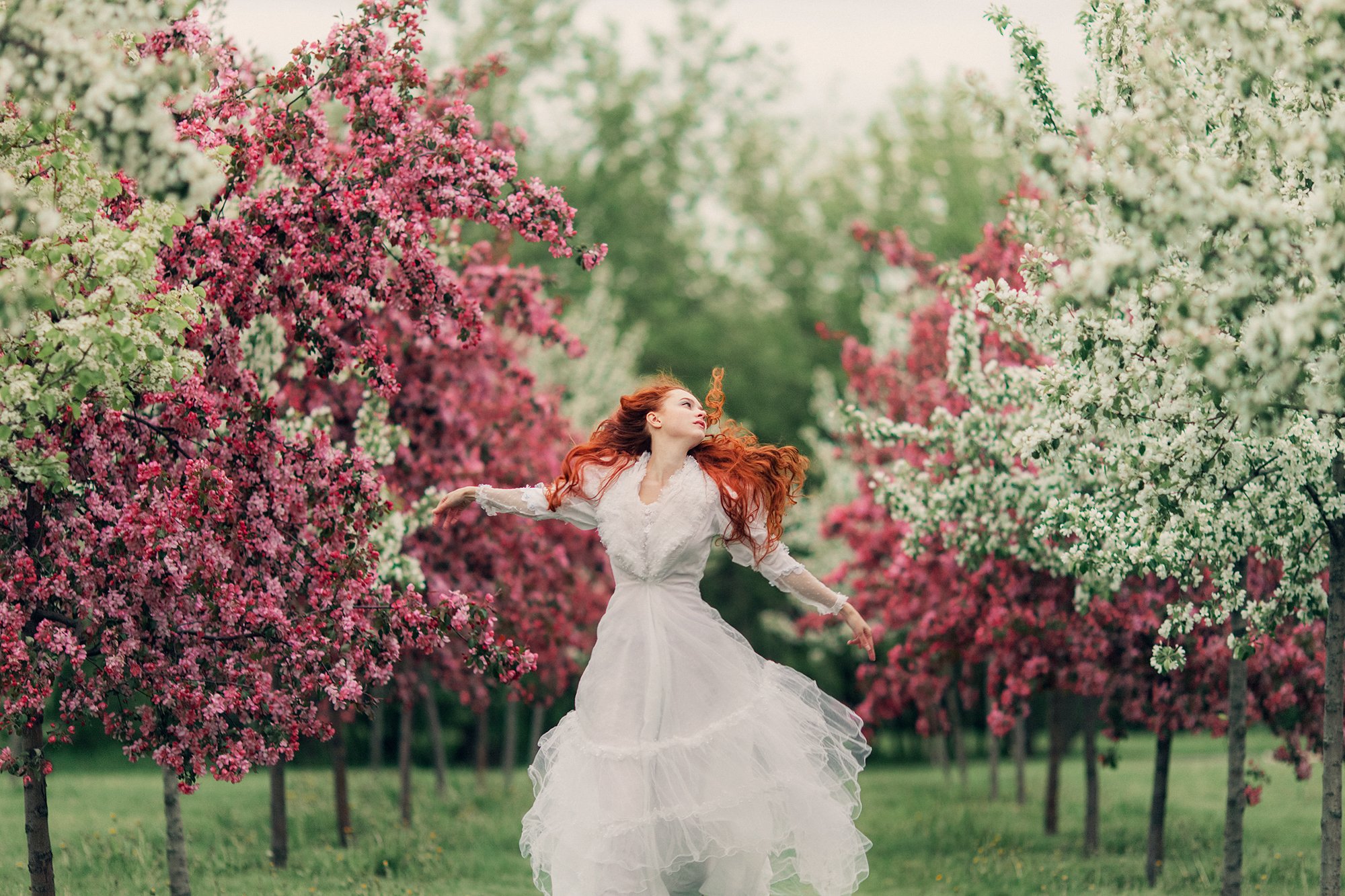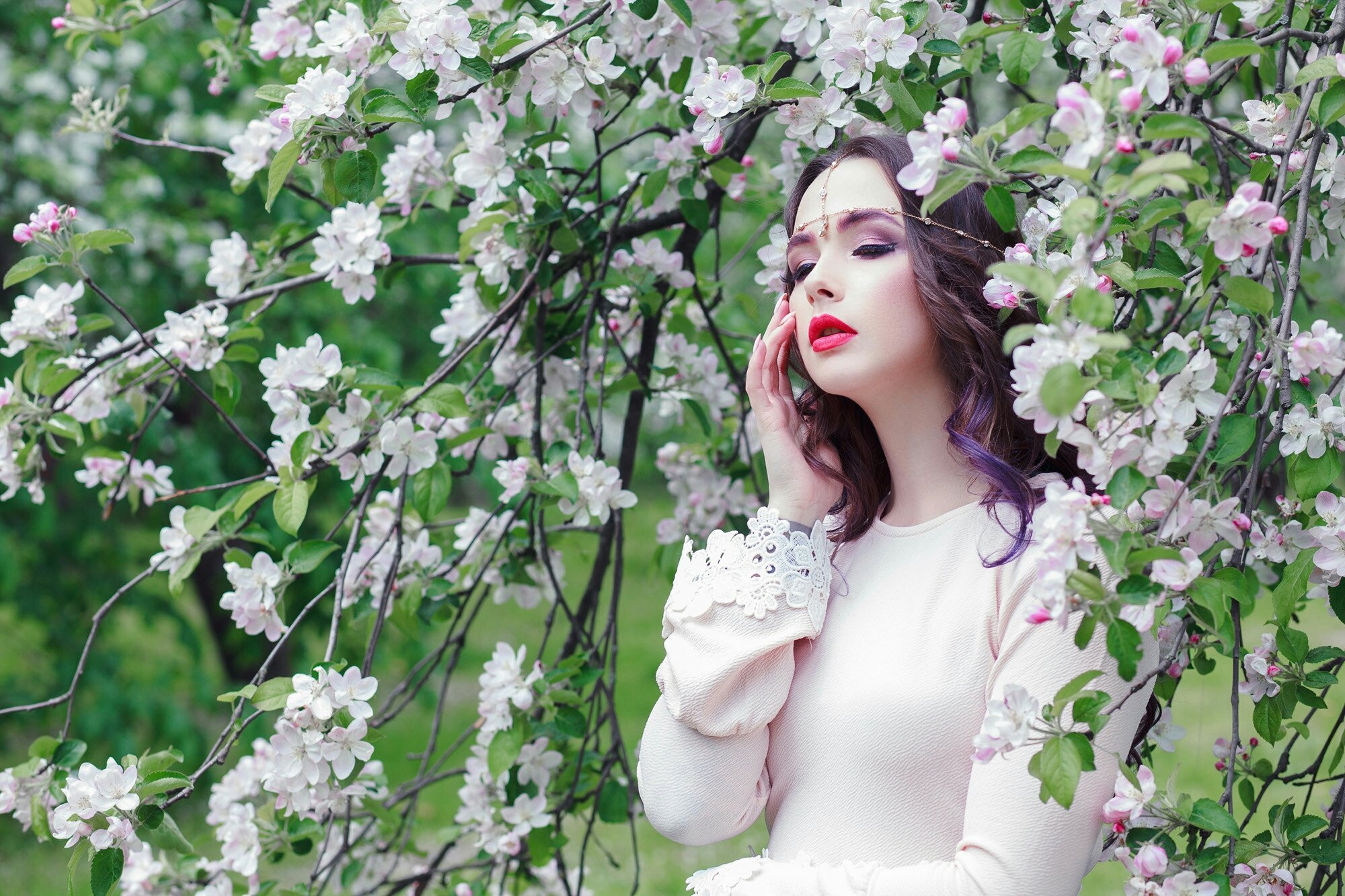 Девушка с цветущими деревьями