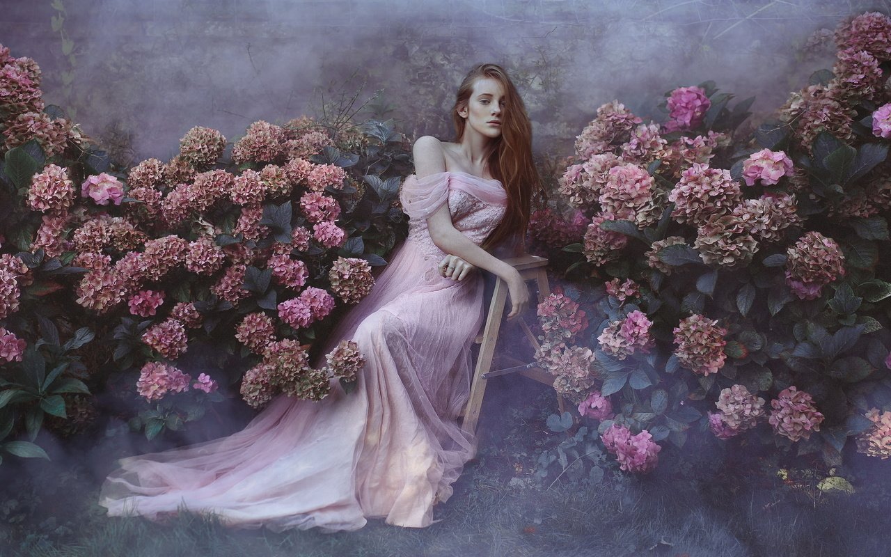 ![Девушка с гортензиями]()