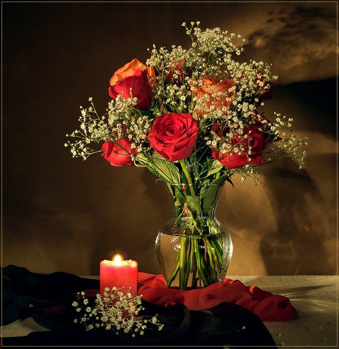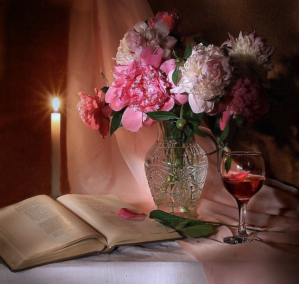 ![Красивые букеты с пожеланиями спокойной ночи]()