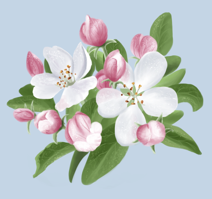 ![Яблоневый цвет на белом фоне]()