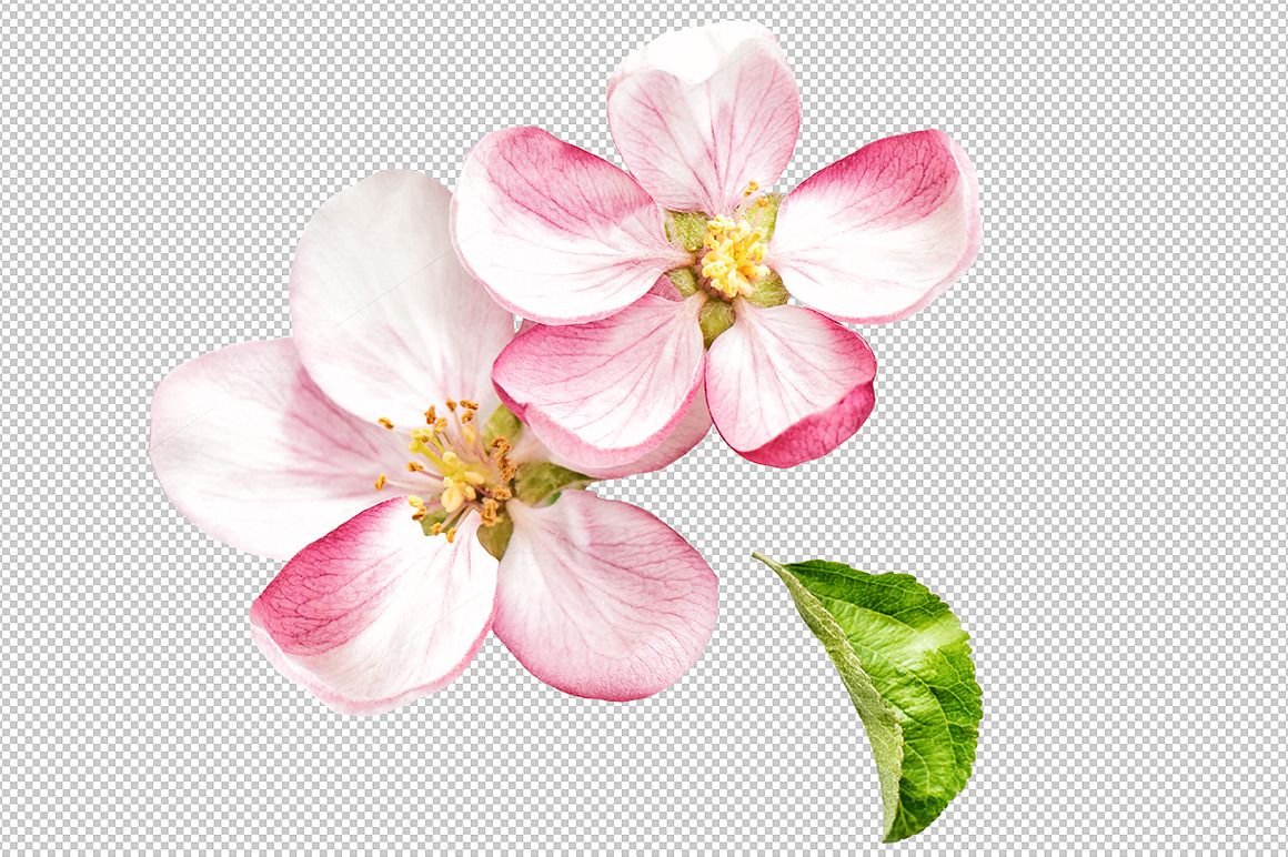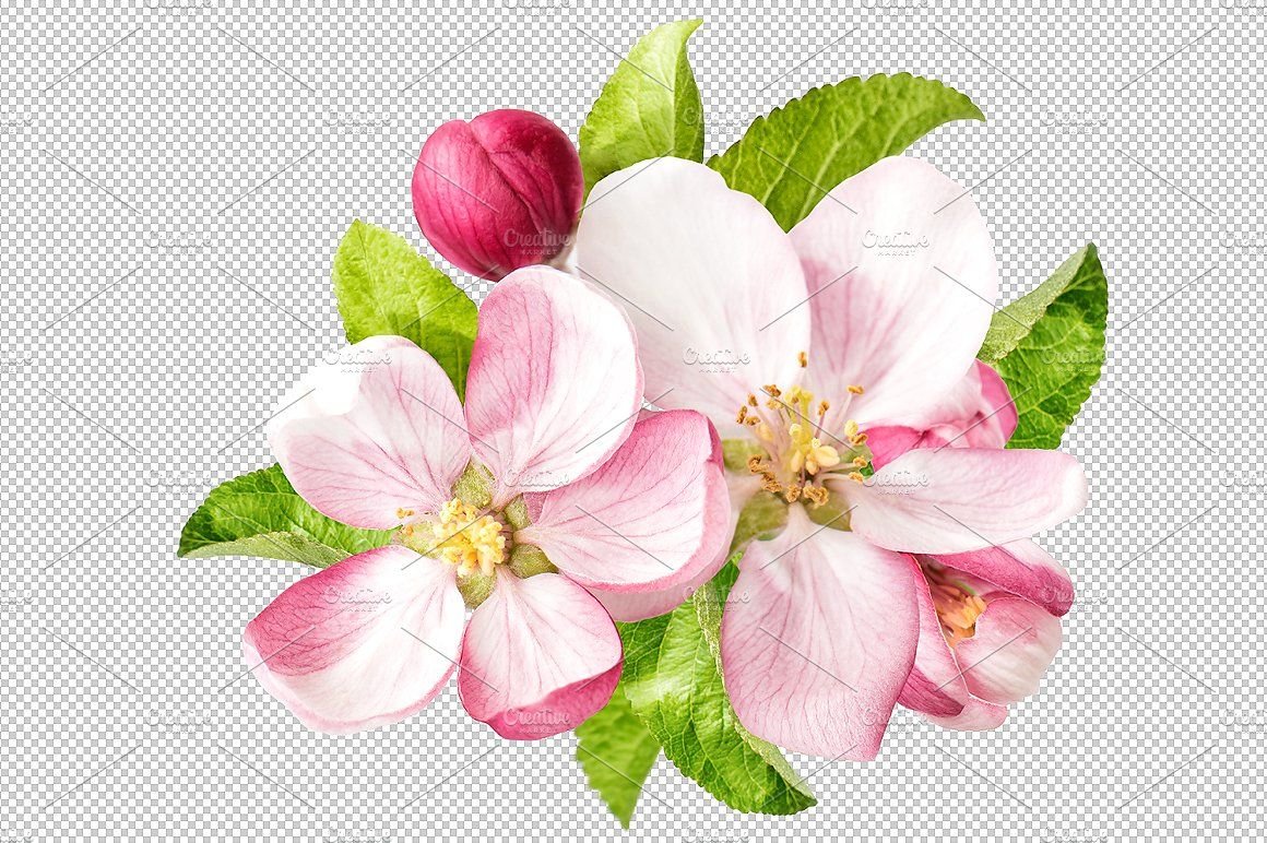 Яблоневые цветы на прозрачном фоне