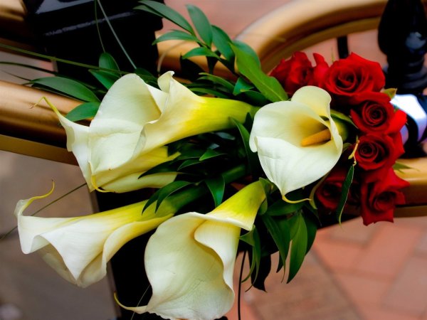 ![Лилии розы и Калла букет]()