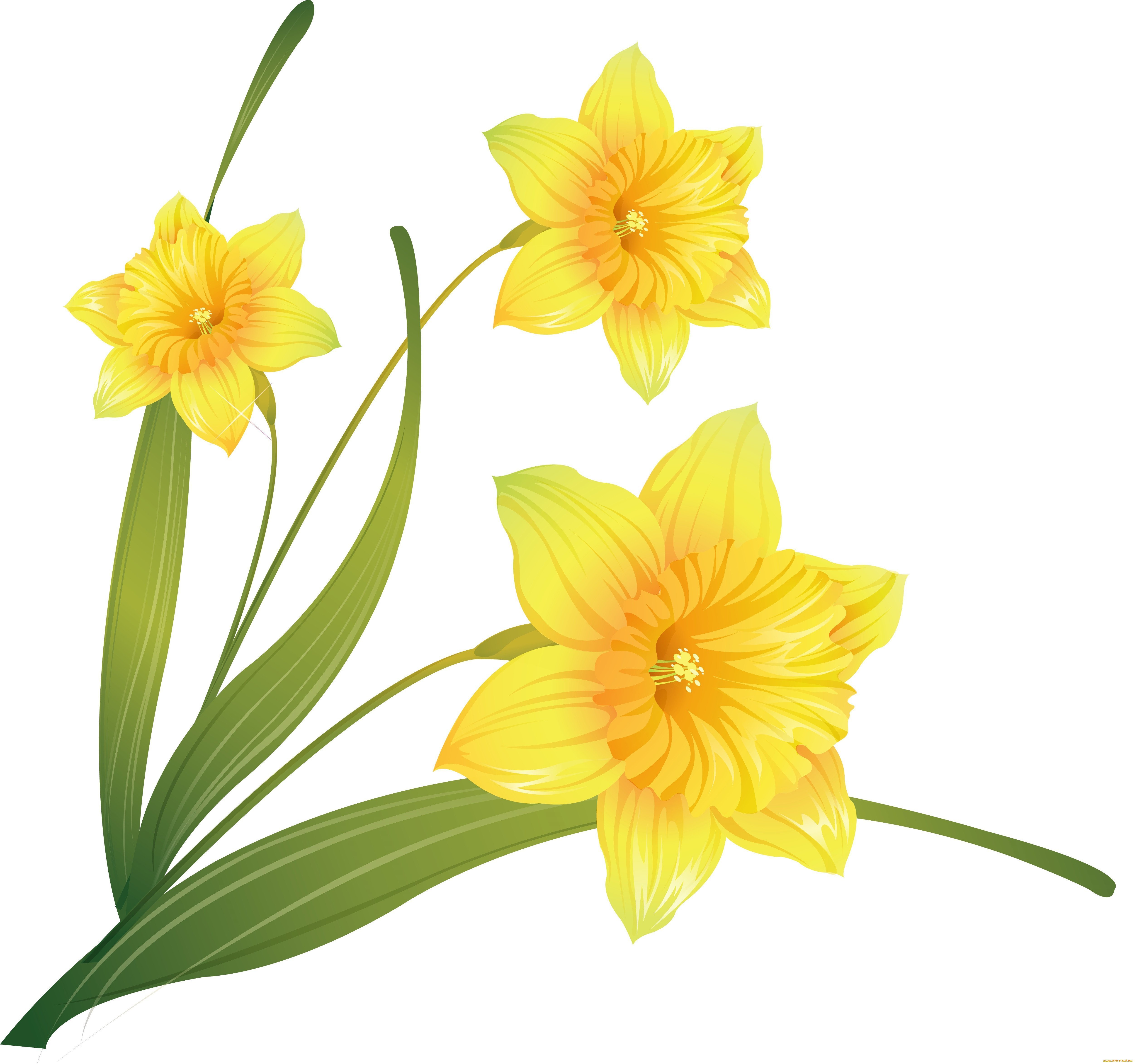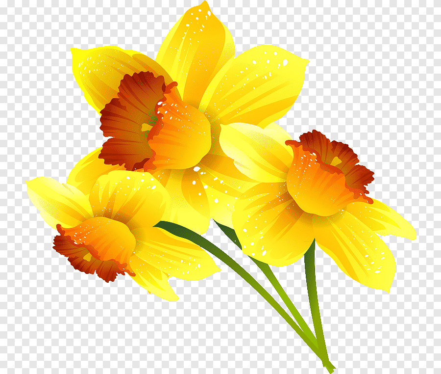 ![Желтые нарциссы на прозрачном фоне]()
