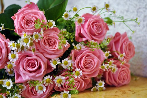 ![Красивые цветы розы и ромашки]()