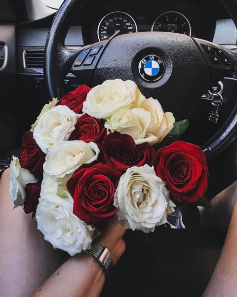 ![БМВ м5 с розами]()