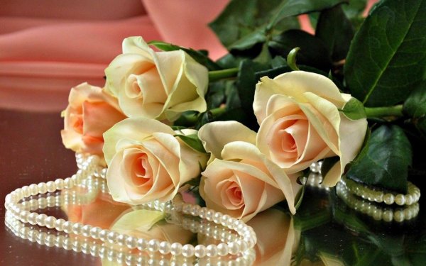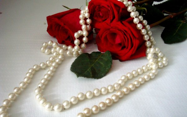 ![Жемчужное ожерелье и розы]()