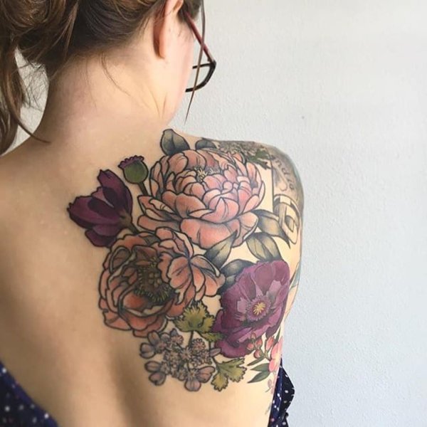 Тату цветы на лопатке для девушек