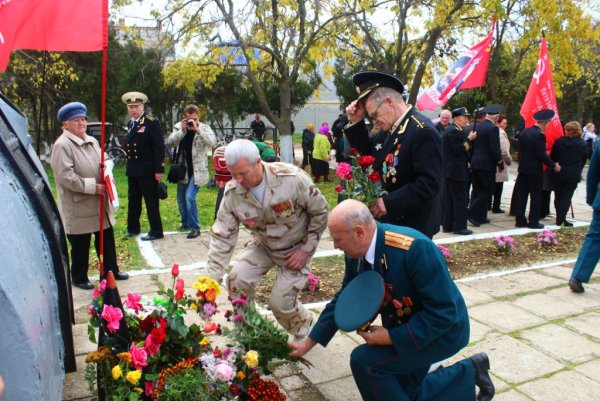 ![Ветераны Великой Отечественной войны возлагают цветы]()