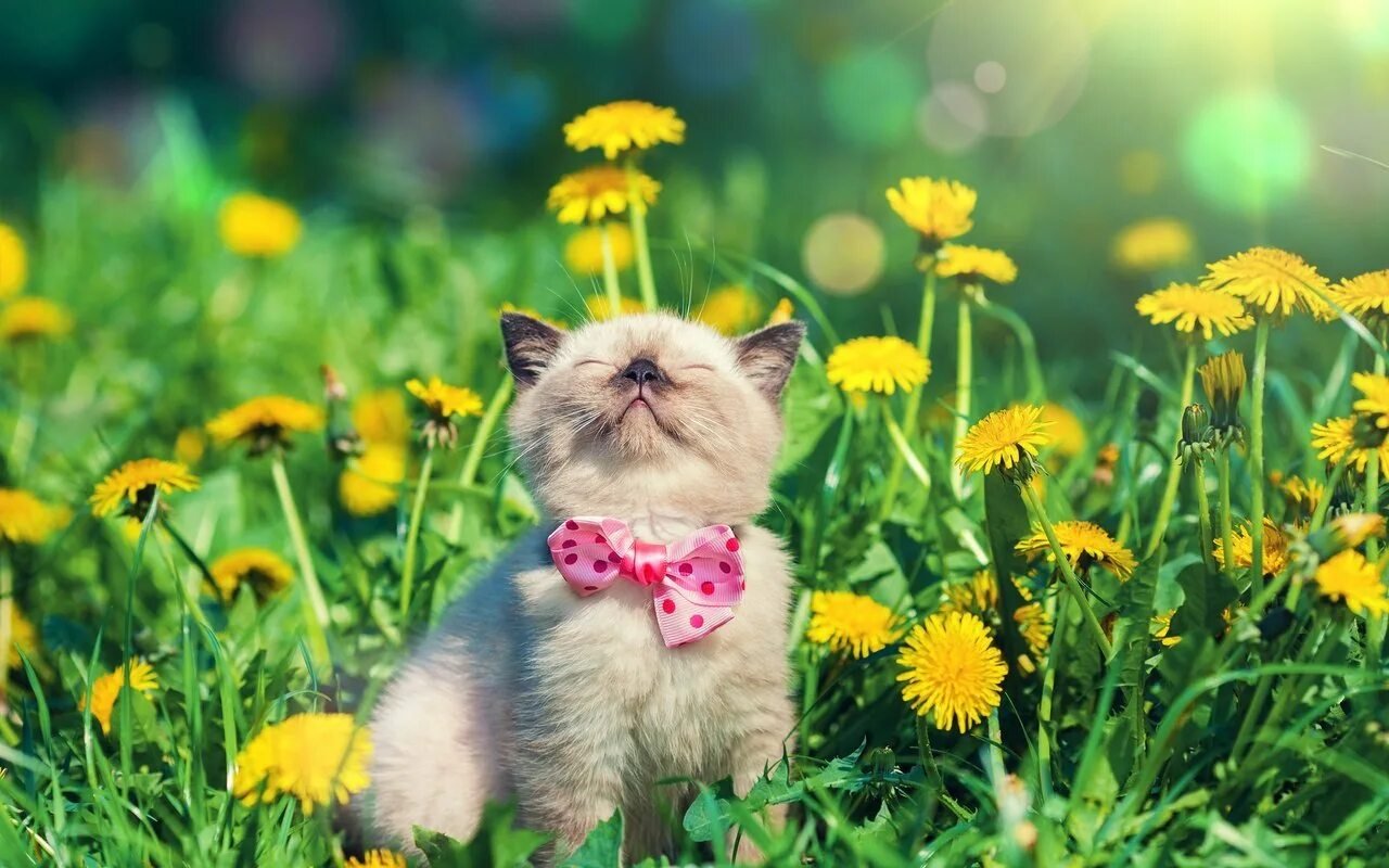 ![Котенок с цветами]()