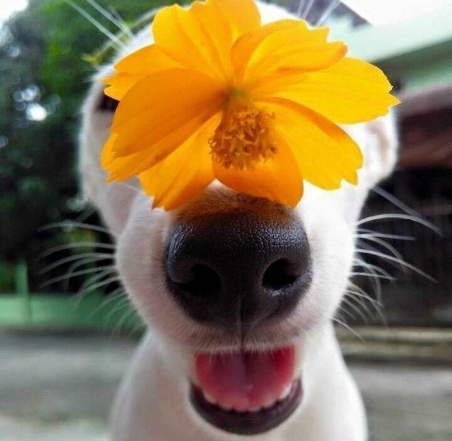 ![Собачка с цветочком]()