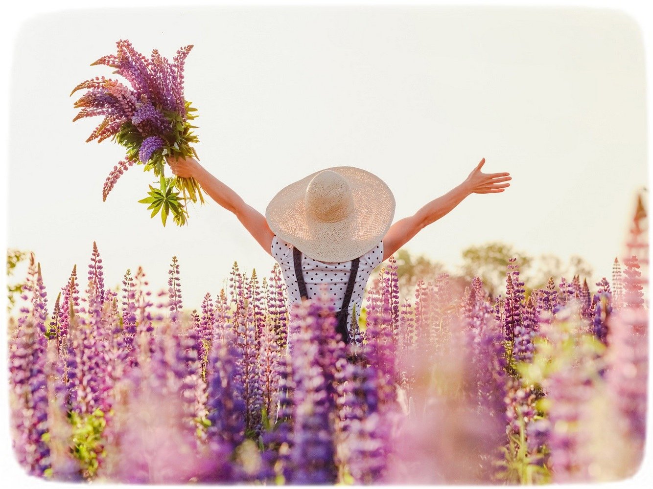 ![Счастливая девушка в поле]()