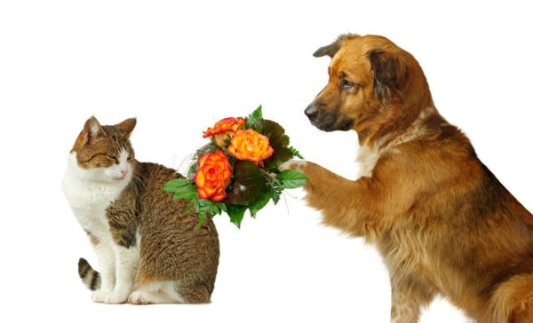 ![Кошки и собаки с цветами]()
