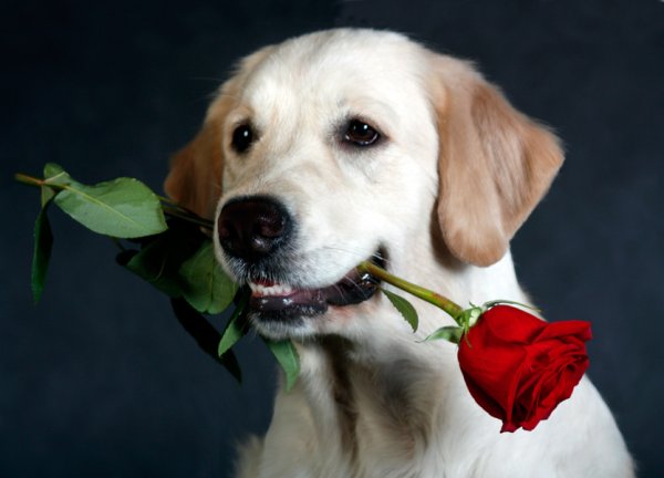 ![Лабрадор с розой]()