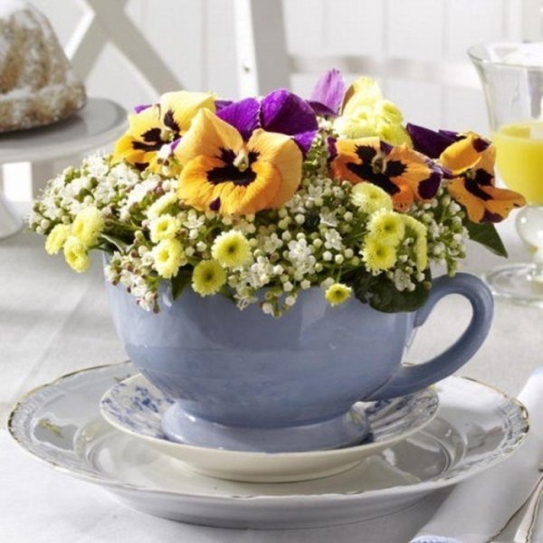 Анютины глазки в чашке