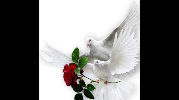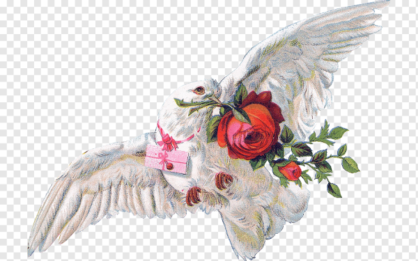 Голубь с розой в клюве