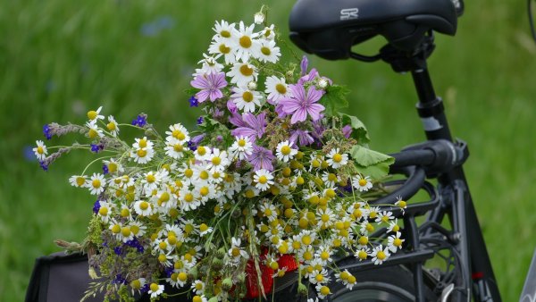 ![Полевые цветы и велосипед]()