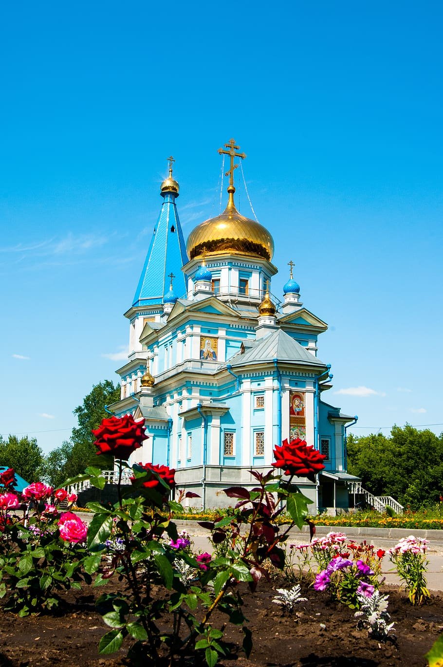 Цветы на фоне храма