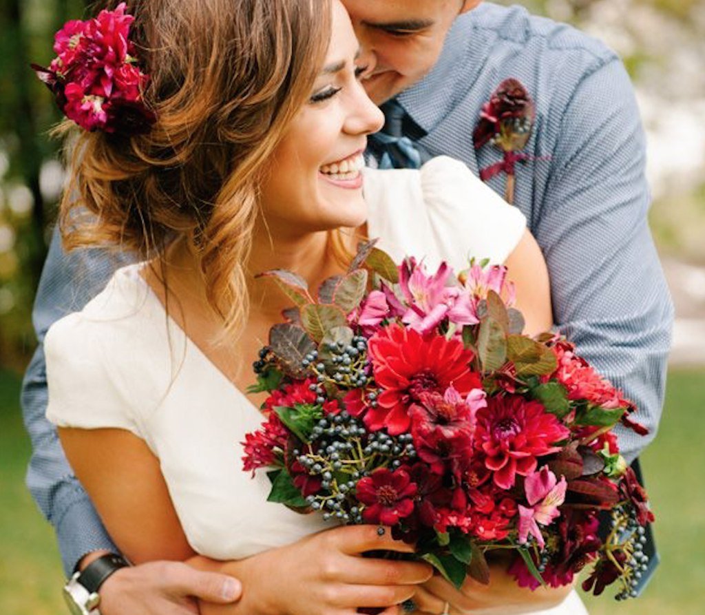 Счастливые пары с цветами
