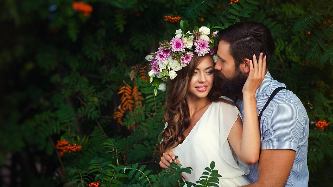 ![Влюбленные пары цветах]()