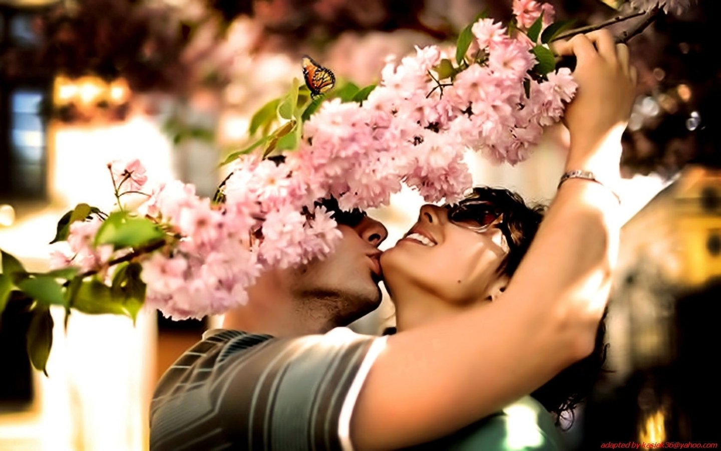 ![Влюбленные в цветущем саду]()